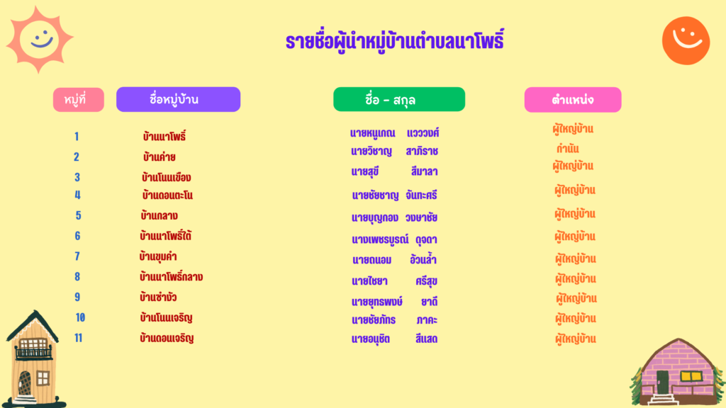 รายชื่อผู้นำหมู่บ้านตำบลนาโพธิ์