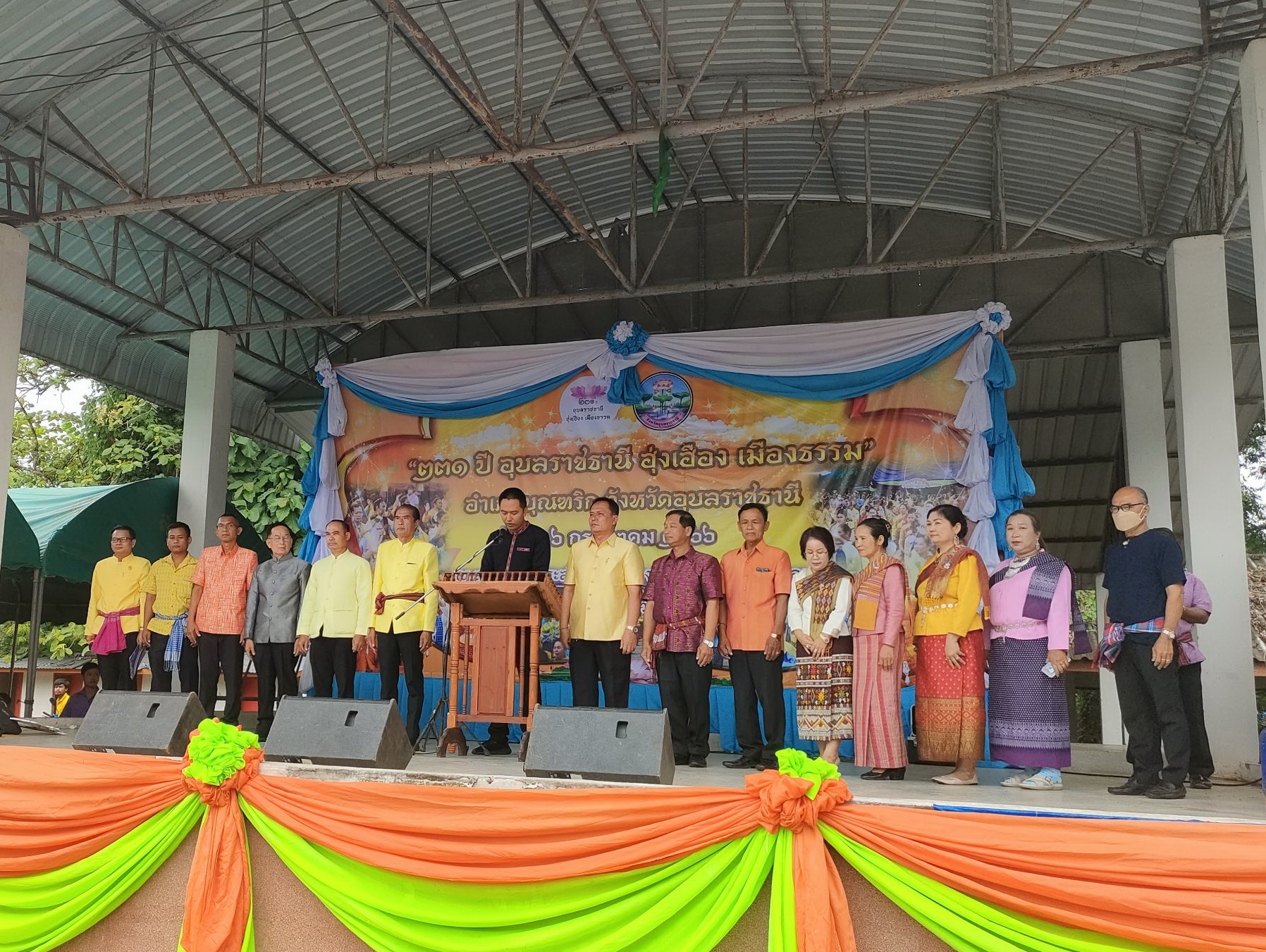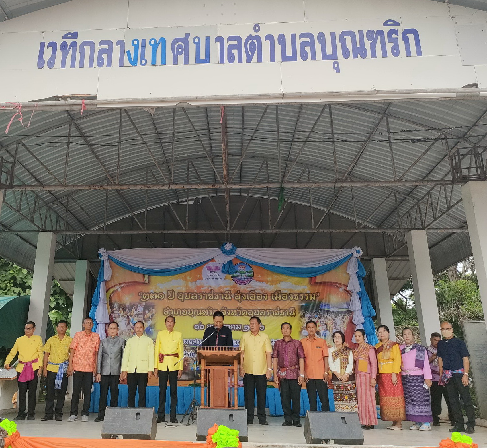 วันที่ 16 กรกฎาคม 2566 เวลา 07.00 น. เป็นต้นไป เทศบาลตำบลนาโพธิ์ นำโดย นายนิคม พระเมเด นายกเทศมนตรีตำบลนาโพธิ์ พร้อมด้วย คณะผู้บริหาร ,รองปลัดเทศบาล ,หัวหน้าส่วน ,ข้าราชการ ,พนักงานจ้าง และลูกจ้างเทศบาลตำบลนาโพธิ์ ได้เข้าร่วมกิจกรรมเนื่องในวันมหามงคลแห่งการสถาปนาเมืองอุบลราชธานี ครบ 231 ปี 16 กรกฎาคม 2566 “231 ปีอุบลราชธานี ฮุ่งเฮือง เมืองธรรม” ณ ลานเอนกประสงค์เขื่อนป้องกันตลิ่งพังลำโดมน้อย (ข้างศาลหลักเมืองอำเภอบุณฑริก) และในเวลา 10.00 น. ได้มีกิจกรรมฟ้อนรำพร้อมกันทั้งจังหวัด จำนวน 3 บทเพลง ประกอบด้วย เพลงอุบลราชธานี ,เพลงออนซอนเมืองอุบลฯ และเพลงมาร์ชอุบลราชธานี ในการนี้ขอขอบคุณไปยังโรงพยาบาลส่งเสริมสุขภาพตำบลนาโพธิ์และ อสม.ตำบลนาโพธิ์ ที่ให้ความอนุเคราะห์เข้าร่วมกิจกรรมฟ้อนรำในครั้งนี้