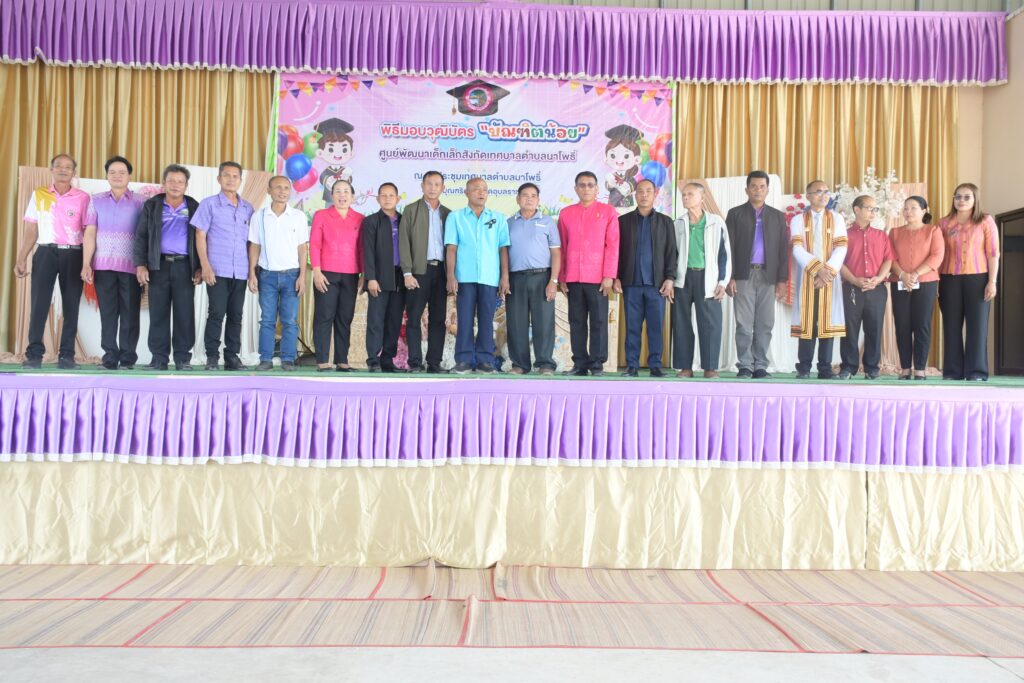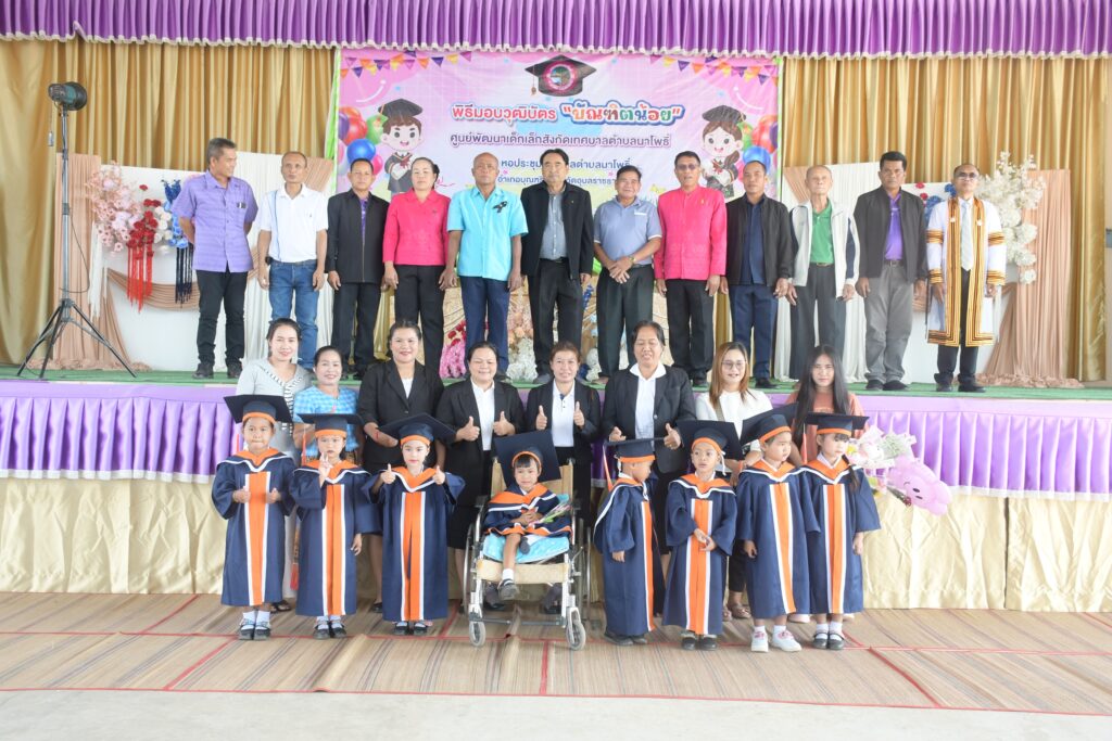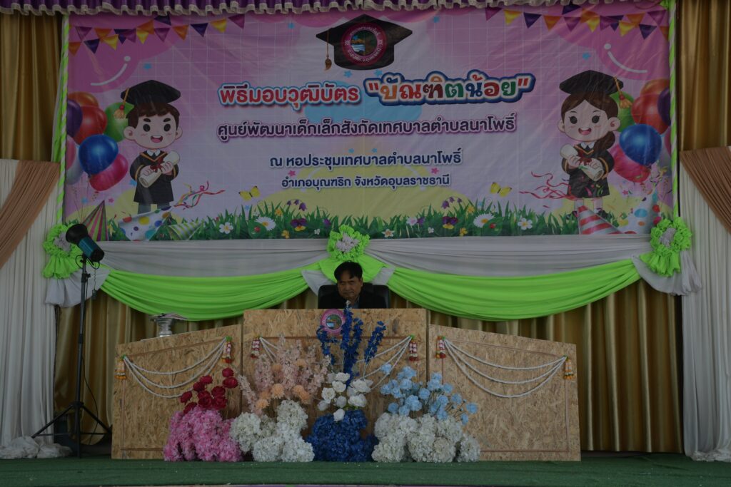 กิจกรรมพิธีมอบวุฒิบัตร “บัณฑิตน้อย” สำหรับนักเรียนที่จบในปีการศึกษาพ.ศ. 2568 1 เมษายน 2026 วนัชยา ข่าวกองการศึกษา, ข่าวประชาสัมพันธ์ ดูทั้งหมด : 25 วันที่ 13 มีนาคม 2569 เวลา 08.30 น. ศูนย์พัฒนาเด็กเล็กในสังกัด เทศบาลตำบลนาโพธิ์ ได้ร่วมกันจัดกิจกรรมพิธีมอบวุฒิบัตร “บัณฑิตน้อย” สำหรับนักเรียนที่จบในปีการศึกษาพ.ศ. 2568 ณ หอประชุมเทศบาลตำบลนาโพธิ์