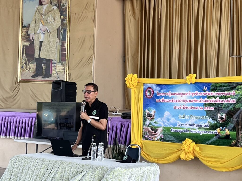 วันที่ 31 มีนาคม 2569 เวลา 09.00 – 12.00 น. เทศบาลตำบลนาโพธิ์ ได้ดำเนินการจัดโครงการคุ้มครองดูแลบำรุงรักษาทรัพยากรธรรมชาติและสิ่งแวดล้อมควบคุมมลพิษเป็นมิตรต่อสิ่งแวดล้อม ประจำปีงบประมาณ พ.ศ.2569 ณ หอประชุมเทศบาลนาโพธิ์ และในเวลา 13.00 น ได้เดินทางไป อบต.บ้านแมด เพื่อดูงานระบบบำบัดสิ่งปฏิกูลแบบบ่อ ณ บ้านหนองโดน ต.แมด อ.บุณฑริก จ.อุบลราชธานี
